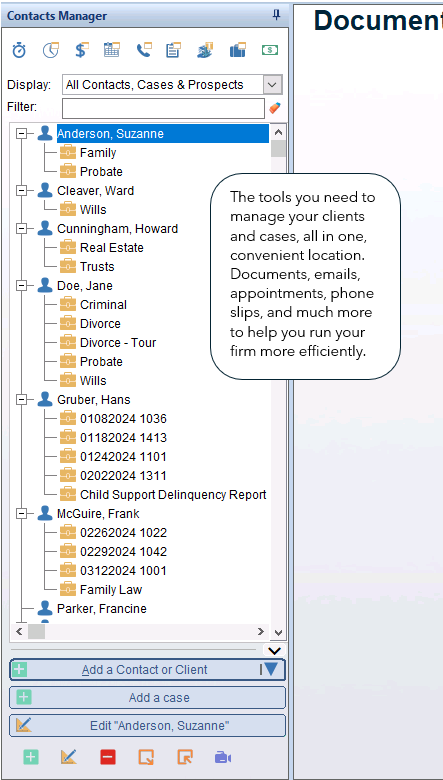 TXdocs’s Practice Management suite includes contact management, billing, calendaring, email management and case management. This optional suite is priced to be affordable for small Texas firms while providing sophisticated and full featured capabilities.